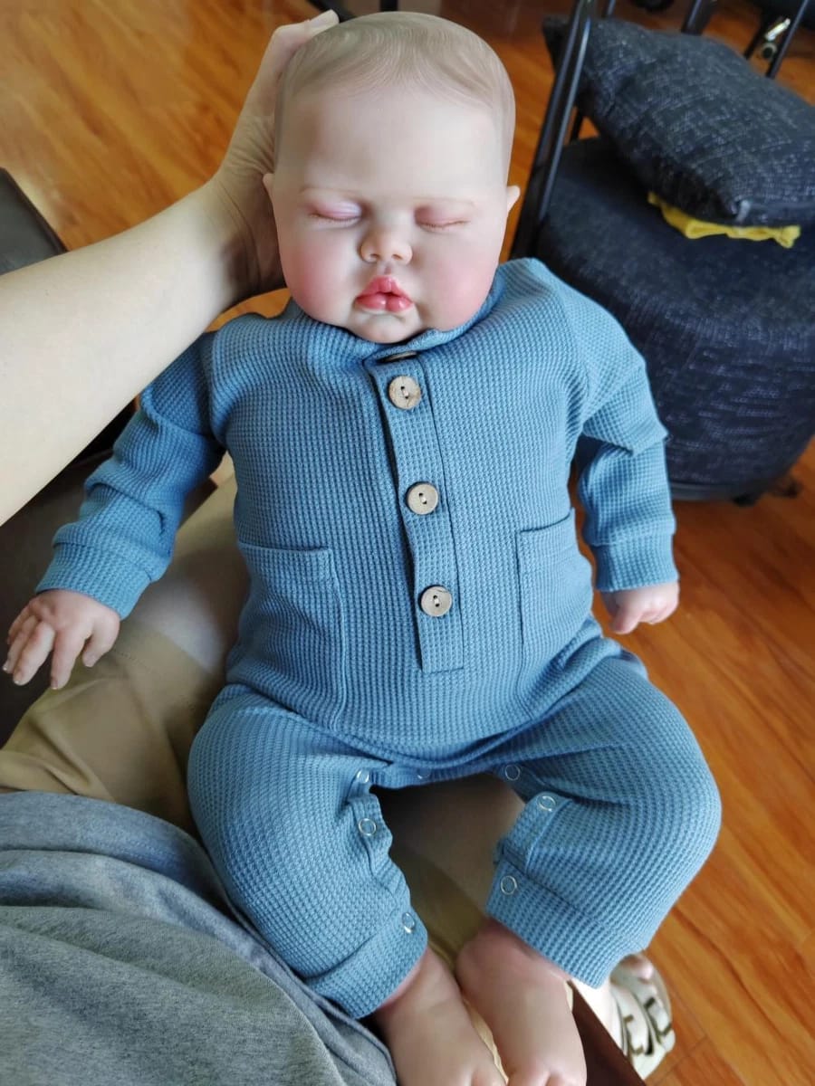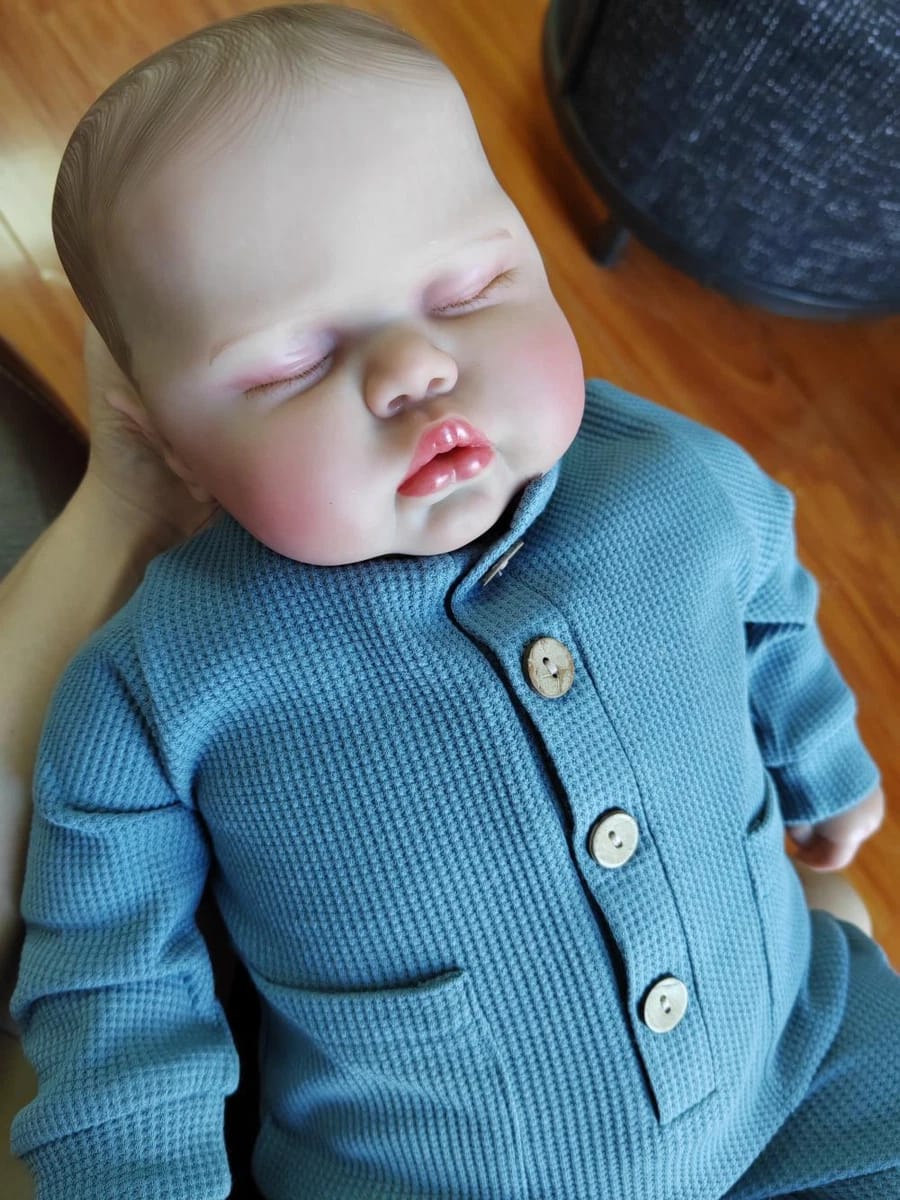 What truly sets this lifelike reborn baby doll apart is the exceptional attention to detail visible in every feature. The painted hair technique creates remarkably realistic definition and texture, giving Pickle a soft, natural appearance that catches the light beautifully. The closed-eye design evokes the serene expression of a sleeping infant, complete with delicately painted eyelashes that cast gentle shadows across the sculpted face. Each facial feature has been carefully painted by hand to achieve skin tones and subtle variations that mirror real baby skin, including rosy cheeks, natural lip coloring, and even tiny creases that add to the authentic newborn appearance.