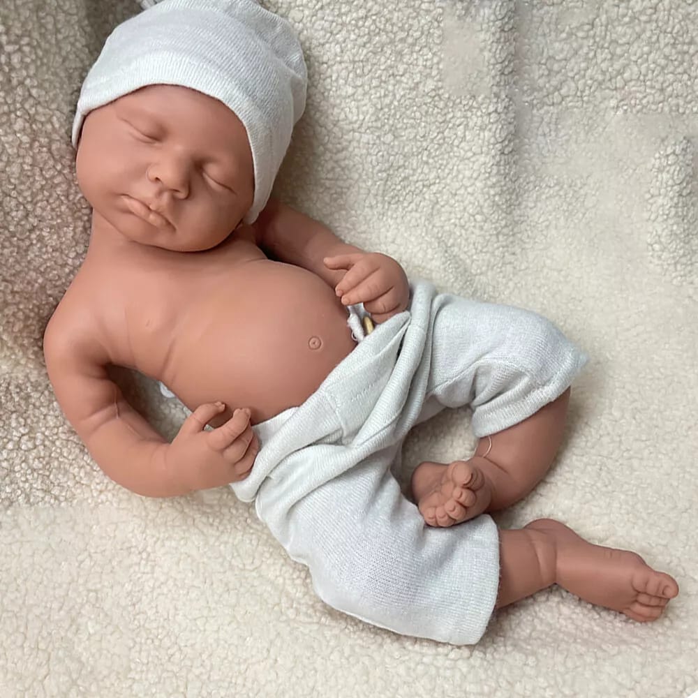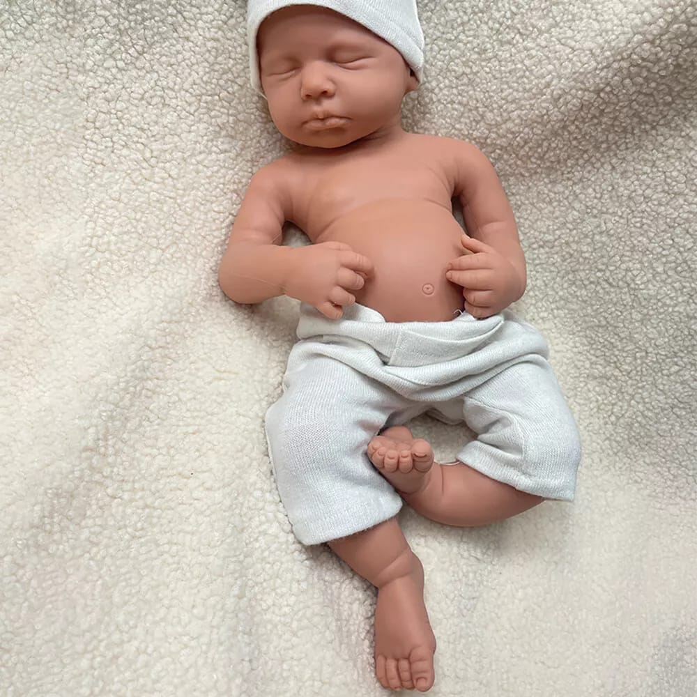 Kai’s facial features are nothing short of breathtaking. His peaceful expression, with gently closed eyes and perfectly sculpted lips, creates an instant emotional connection. The attention to detail extends to every aspect—realistic skin tone, subtle blushing on his cheeks, and delicate features that capture the innocence of a sleeping newborn. When you hold Kai, you can’t help but feel protective and nurturing, which is why these silicone baby dolls are beloved by both children learning empathy and adults seeking comfort or artistic appreciation.