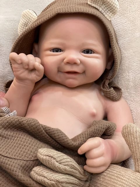 Run your fingers across Kent’s skin and you’ll immediately understand why platinum liquid silicone represents the pinnacle of doll-making materials. The surface is incredibly smooth yet yields gently to touch, just like real baby skin. This advanced silicone is also notably softer than previous generations, offering a cuddling experience that’s comforting and realistic. The flexibility of the full body silicone construction means Kent can be posed naturally arms can be gently positioned, legs can be crossed or straightened, and the head turns smoothly, all while maintaining structural integrity.