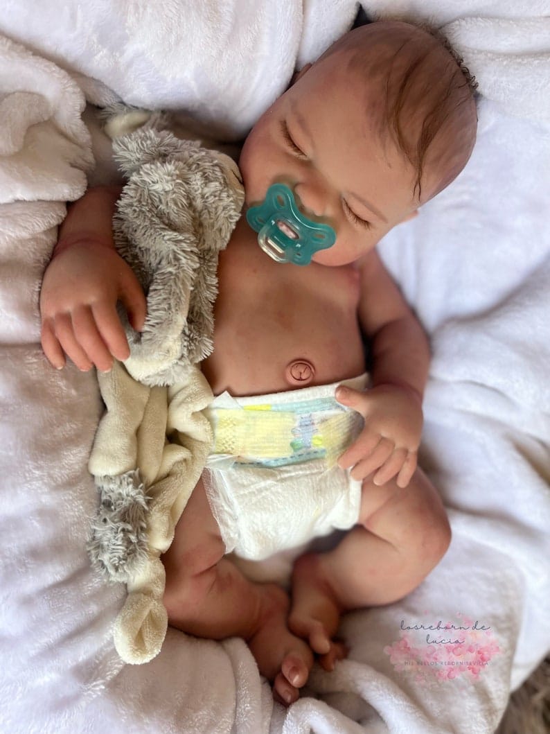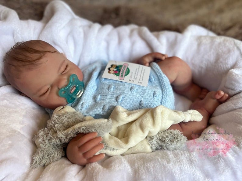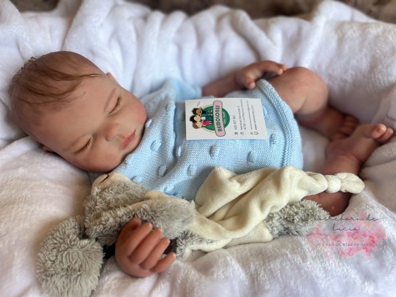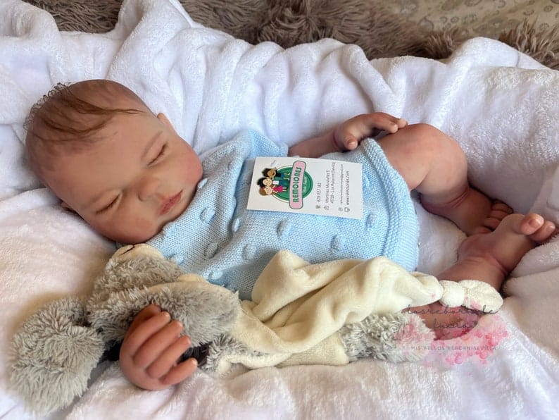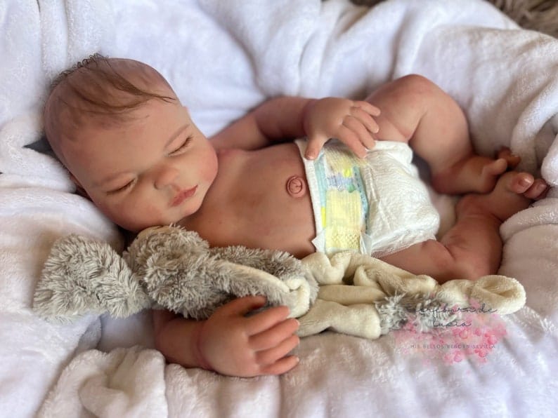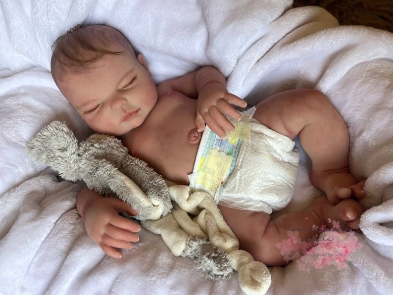 From the moment you see Olivia’s peaceful expression, you’ll be enchanted by her realism. Her hand-dyed hair is carefully applied strand by strand, with a small lock of genuine hair delicately placed on top to enhance authenticity. Her facial features—from her button nose to her gently closed eyelids or bright eyes are painted with artistic precision to capture that precious newborn innocence. The anatomically correct design means you can choose between a baby girl or baby boy version, making Olivia perfect for collectors who appreciate attention to authentic detail.